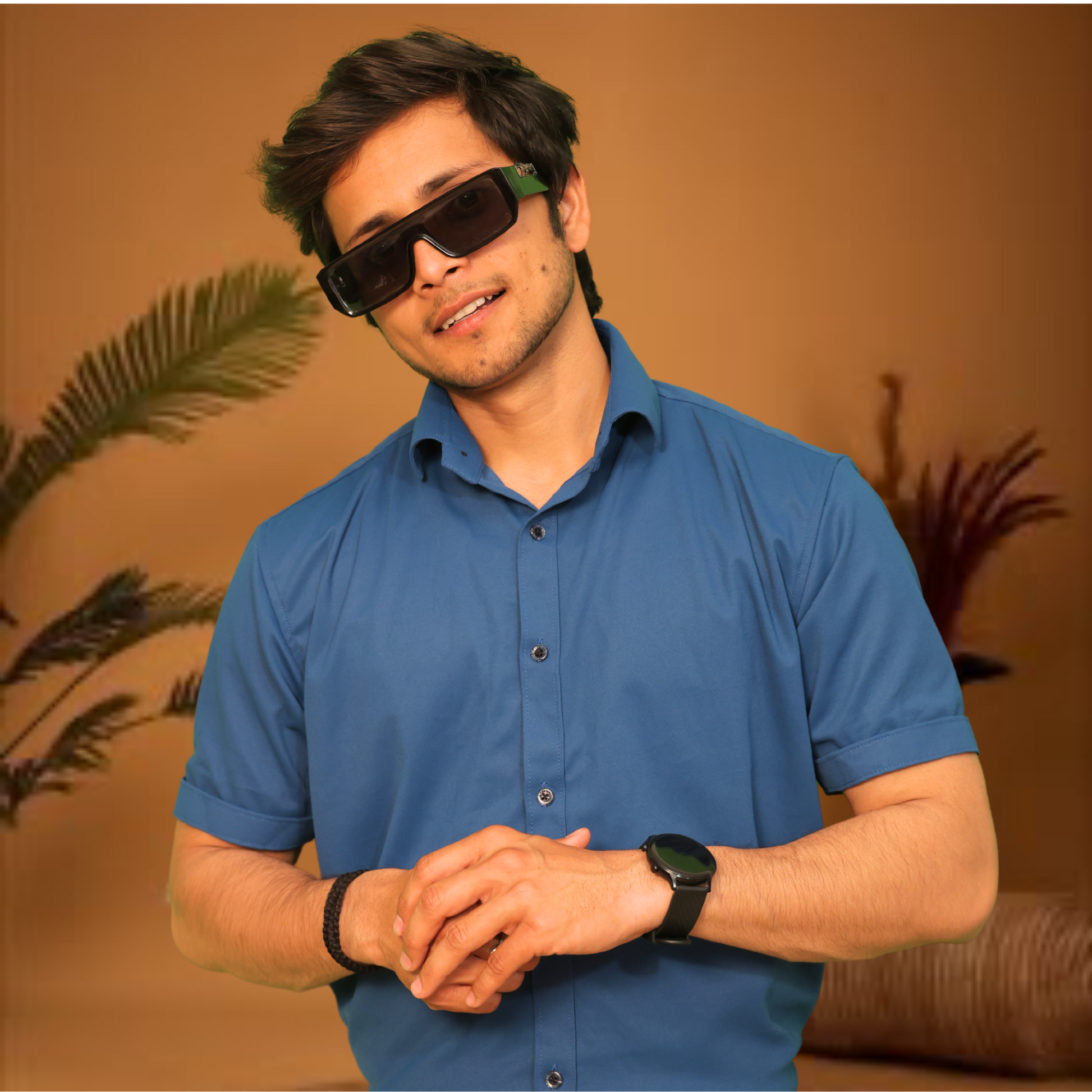 Elevate your essentials with this sophisticated blue short-sleeve button-down shirt. Timeless and versatile, this vibrant blue shirt offers exceptional styling potential for both casual and semi-formal occasions. The premium fabric delivers a smooth finish with a comfortable feel against the skin, while the tailored cut provides a clean silhouette that flatters your physique. Featuring quality button detailing and a structured collar, this shirt exudes understated elegance with attention to craftsmanship. The striking blue shade pairs effortlessly with neutral tones or bold accents, making it perfect for business casual settings, summer events, or elevated everyday wear. A true wardrobe staple that transitions seamlessly from day to night, this shirt embodies modern masculine style with enduring appeal.