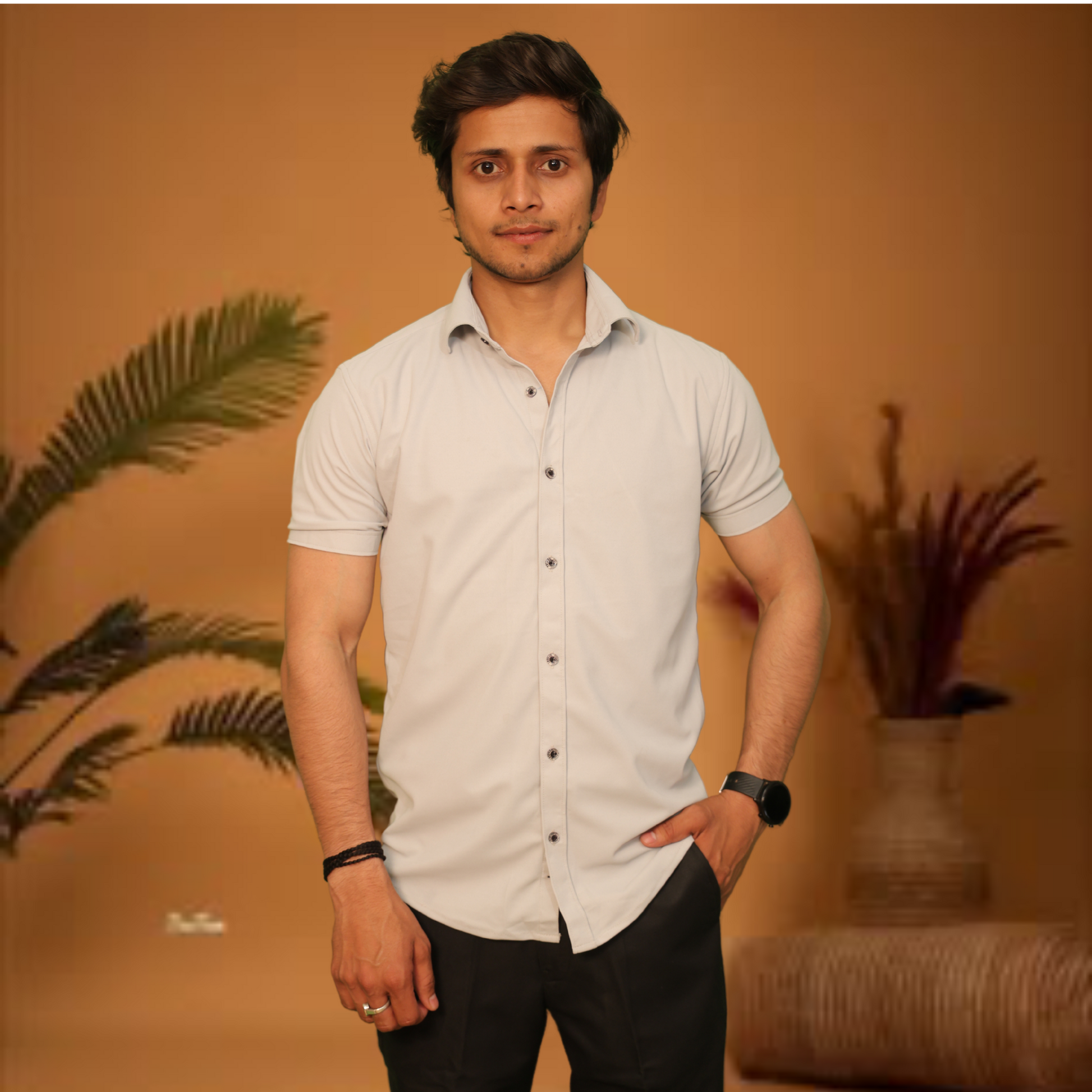 Elevate your casual wardrobe with this sophisticated short-sleeve button-down shirt. Featuring clean lines with quality button detailing, this versatile piece transitions seamlessly from day to evening wear. The comfortable fit and breathable fabric ensure all-day comfort, while the tailored silhouette creates a polished look that pairs perfectly with dark trousers or jeans. Complete with a modern collar and practical design, this shirt is an essential addition to any stylish man's collection. Perfect for warm weather, office casual days, or weekend outings.